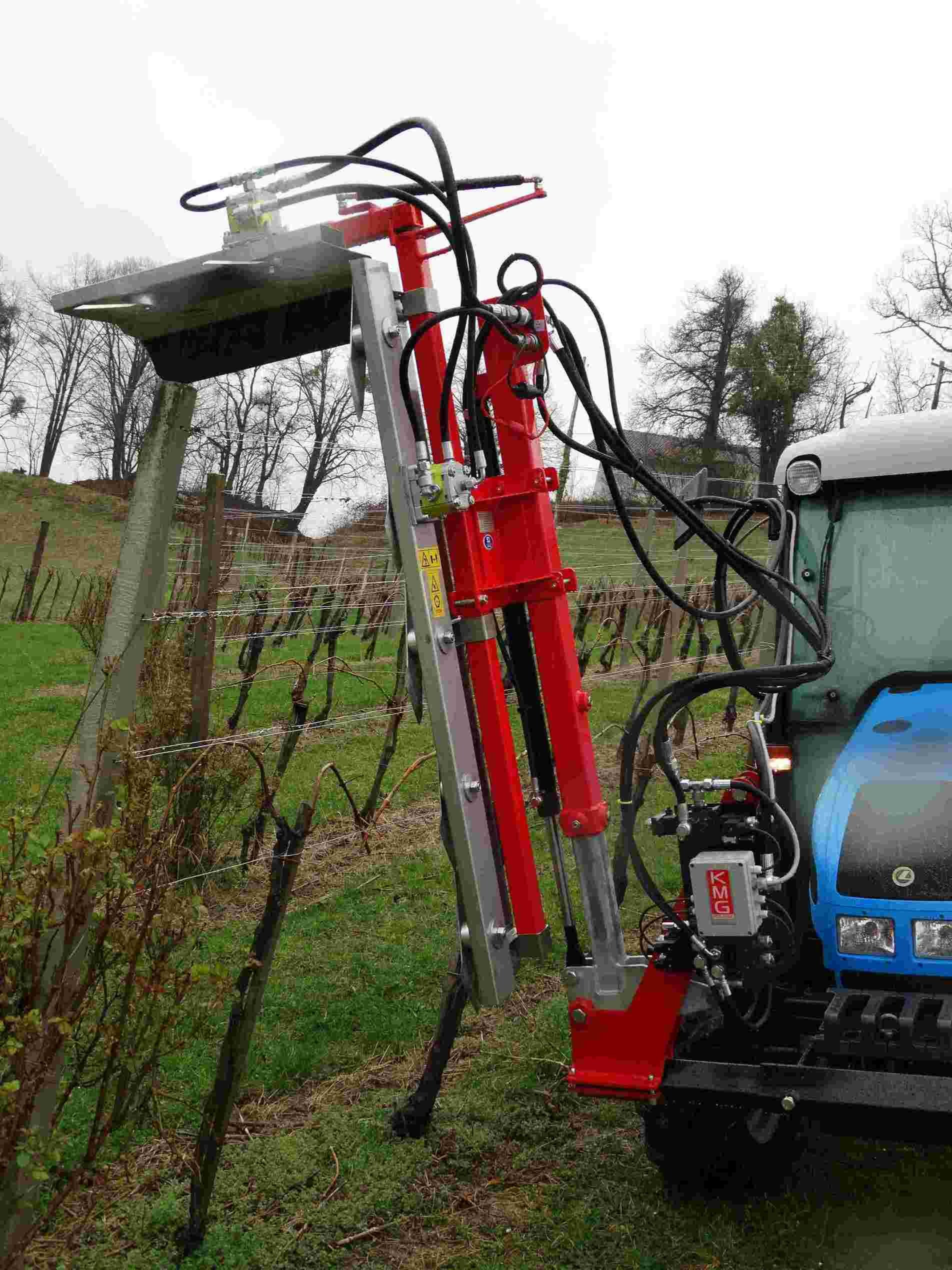 - Způsob uchycení ožínací lišty umožňuje lištu hydraulicky posouvat do boku, hydraulicky zvedat a hydraulicky naklápět.
